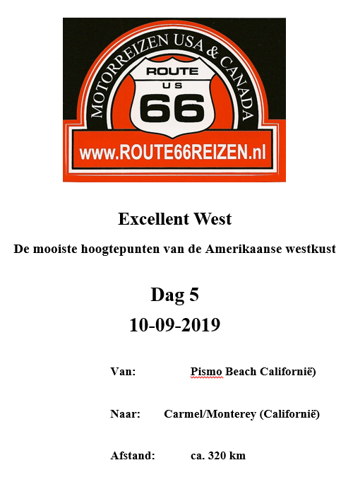 Van Pismo Beach (Californië) naar Carmel/Monterey (Californië).